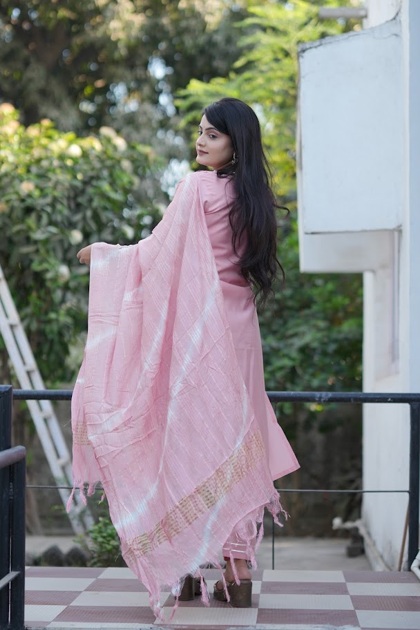 Festive Woven Gold Banarasi-Style Salwar Kameez Set in Deep Light Pink