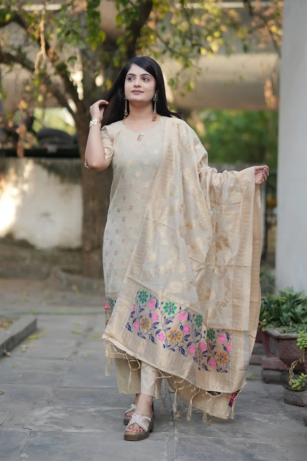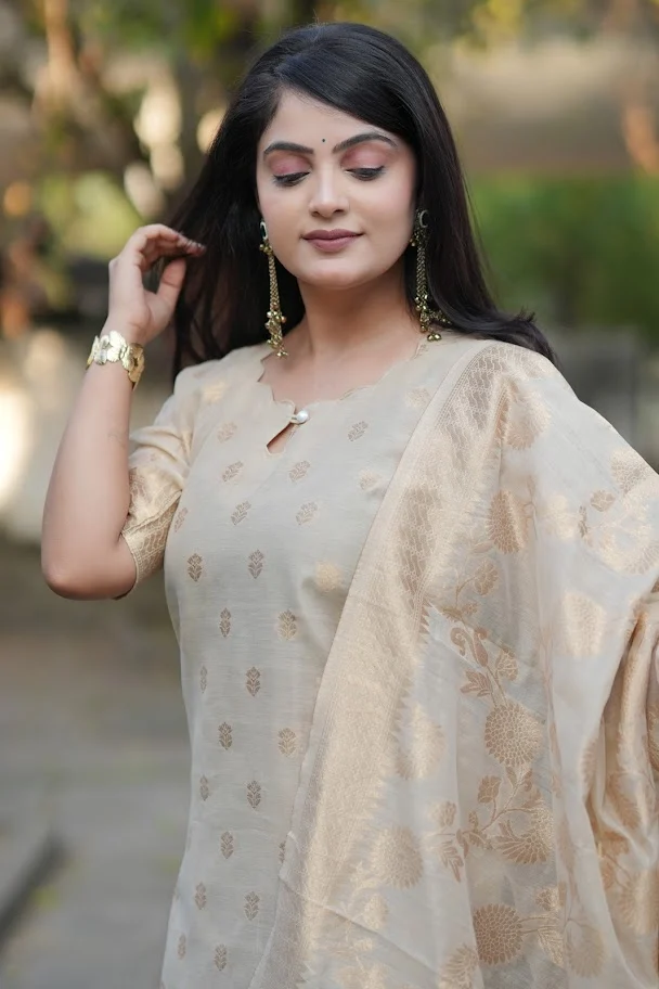 Woven Cotton Kurta Set with Dupatta – Lightweight Daily Wear | SilkBliss Fashion